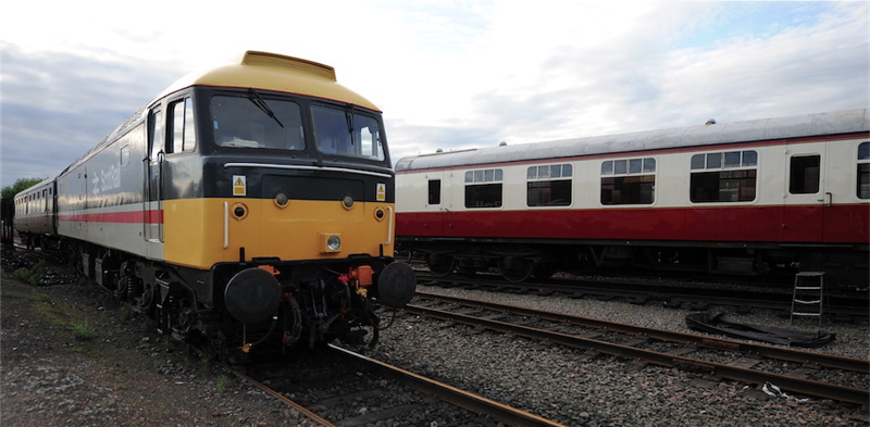 British Railways Mk1 coaches (blood & custard) livery.