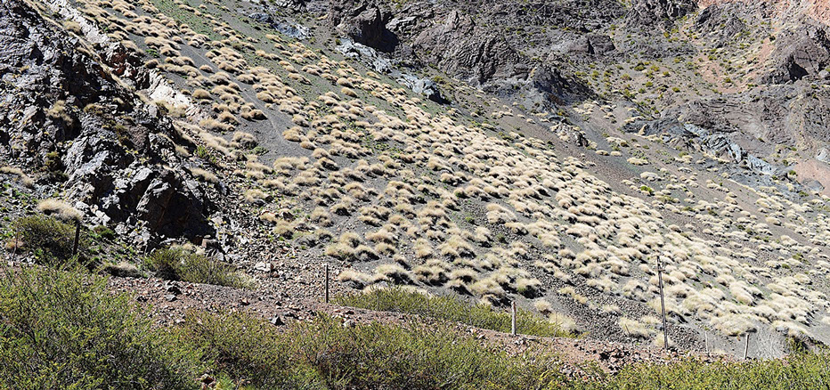 Rive droite, éboulis et "Coirones".